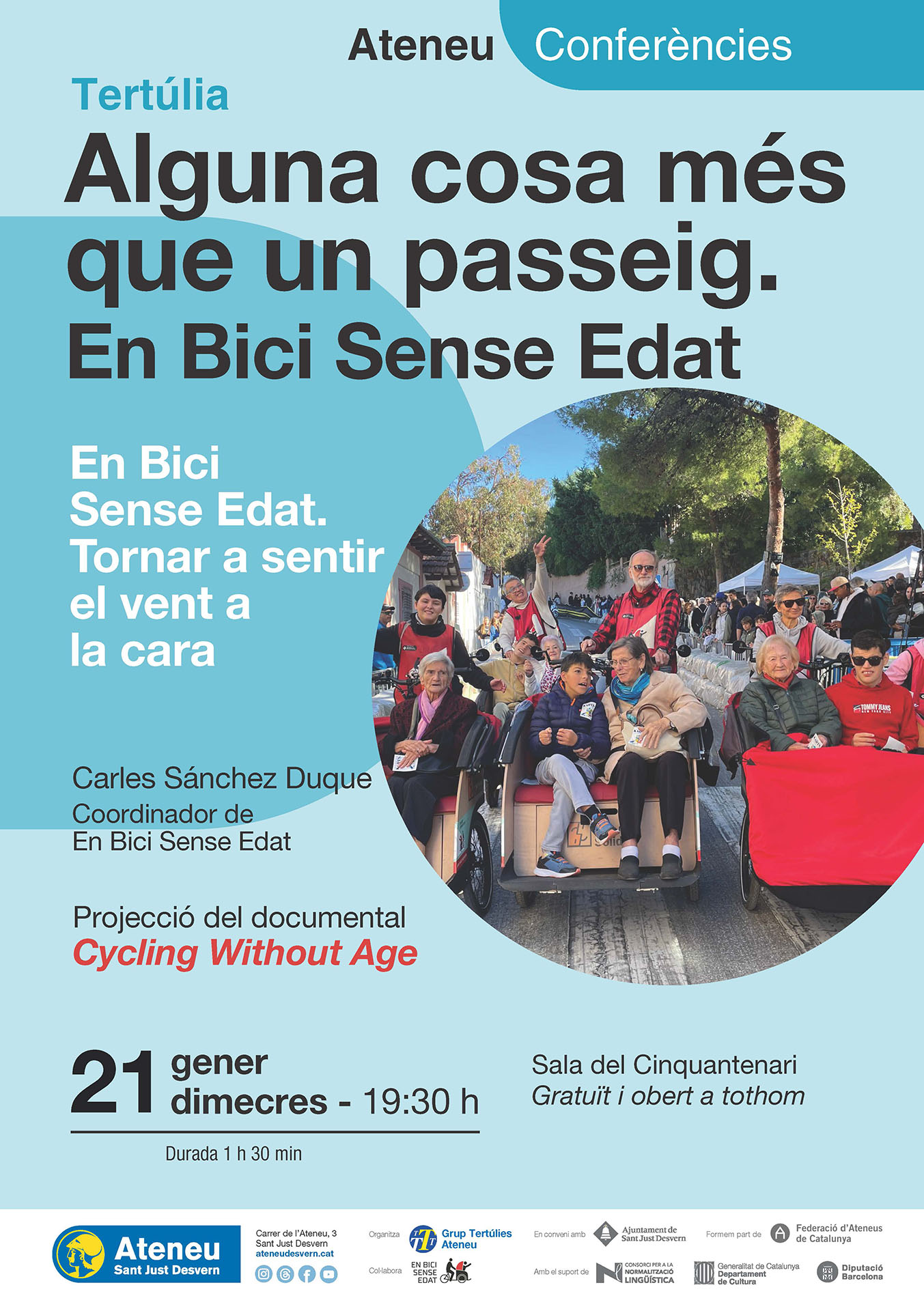 La secció Grup de Tertúlies de l’Ateneu i Sant Just Solidari organitzen dins la programació del Cicle de Tertúlies de l’Ateneu, “En Bici Sense Edat: Alguna cosa més que un passeig”.